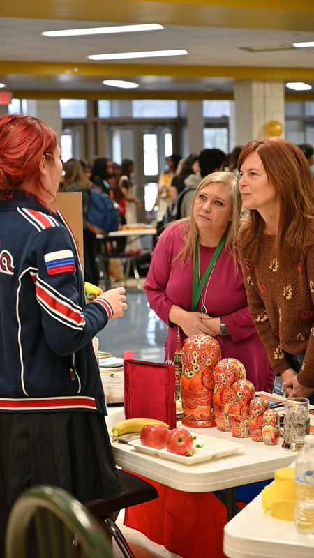 "The first year we were a team, we mainly focused on small informational advisory lessons throughout the year, but had bigger ideas," says teacher and Equity Team member Meg. "At the end of the first year, we started discussing different events we wanted to plan, and that's when Culture Day came up. Last year, we had our first culture day, where about 12 students brought information, artifacts, clothing, and food that helped represent their heritage. This year, we had 25 students participate and share about their cultures. Last year's experience and planning this year's event have helped us come together as a team and learn about all of the cultures represented at Mayo. We're excited to provide other students and staff with this opportunity to learn more!"
